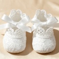 レースとリボンが可愛らしい、ニューボーンフォト撮影用のベビーレースシューズ。