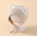 ニューボーンフォト撮影用のねこ耳付きニットキャップ。