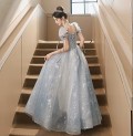 すっきりとしたデコルテラインが上品なプリンセスドレス。