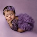 ニューボーンフォトにぴったりのチュチュ付きレースロンパース&フラワーヘッドバンドセット。