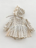 繊細なボタニカル柄のロンパースドレスとボンネットがセットになっており、簡単に統一感のある撮影が可能です。