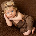 落ち着いたブラウンの色味が可愛いニットハット&オーバーオールセット。