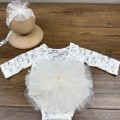 うつ伏せでの撮影時、バックに取り付けられたチュールがふんわり立ち上がり、チュチュスカートを着用しているような見た目になります。※同色のヘアバンド付き(形はおまかせ。リボンまたはお花)