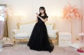 ビーズ輝くバックリボンのブラックオフショルダードレス 【2泊3日レンタル往復送料無料】