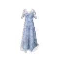 花刺繍が映えるふんわり華やかライトブルーシアードレス【2泊3日レンタル往復送料無料】