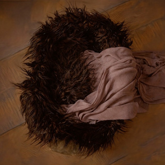 毛足が長く柔らかい、ニューボーンフォト用フェイクファーブランケット。