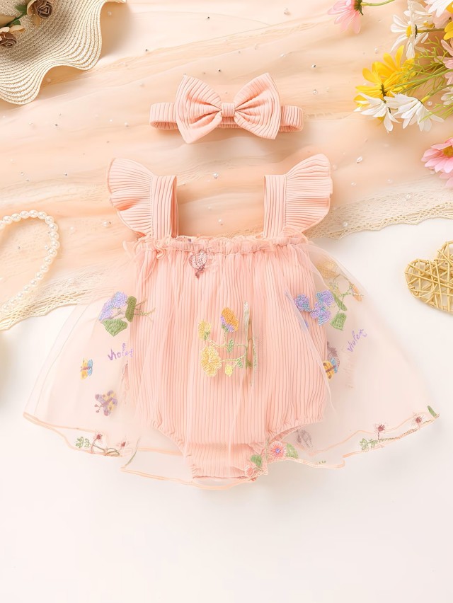 軽やかなシアーレイヤードが可愛いフローラルロンパースドレス。