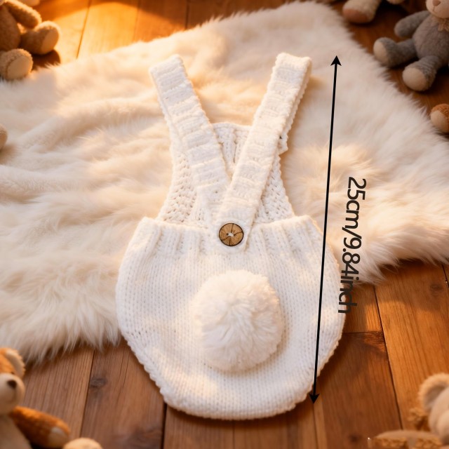 ふわふわのしっぽが可愛らしいオーバーオールロンパース。